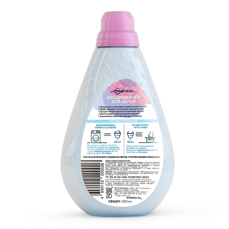 Превосходно ухаживает за всеми видами белья, предотвращает статистическое электричество, придает белью мягкость и приятный аромат, обеспечивает нейтрализацию порошка, значительно облегчает процесс глажения.