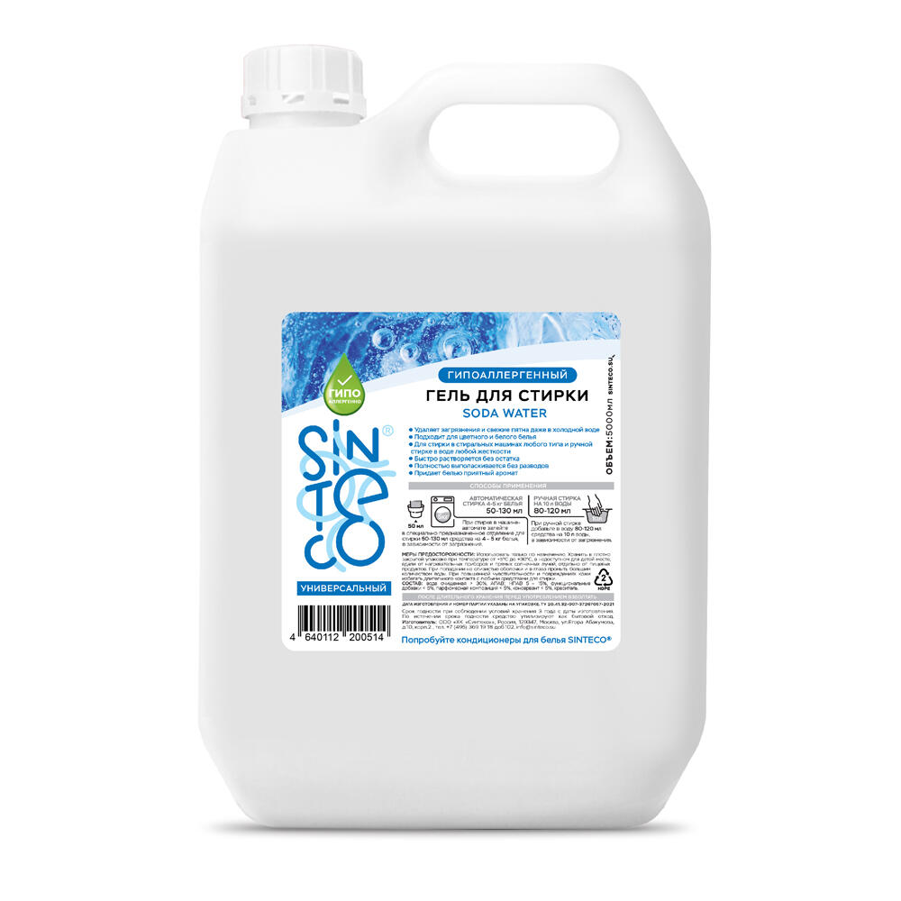 Гель для стирки "универсальный "Soda water" подходит для цветного и белого белья. Свежий аромат с акватическими нотами.