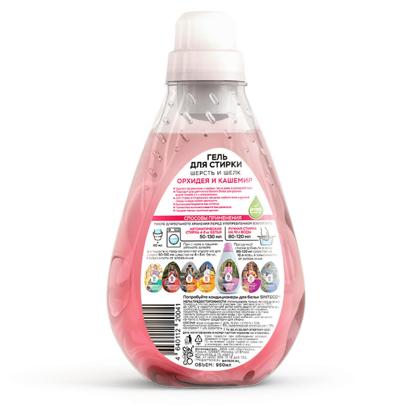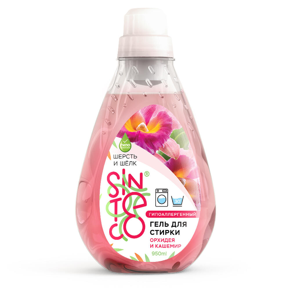 Гель для стирки "шерсть и шелк" "Орхидея и кашемир" подходит для цветного и белого белья, в т.ч. Натуральных тканей. Свежий, нежный аромат цветочного букета.