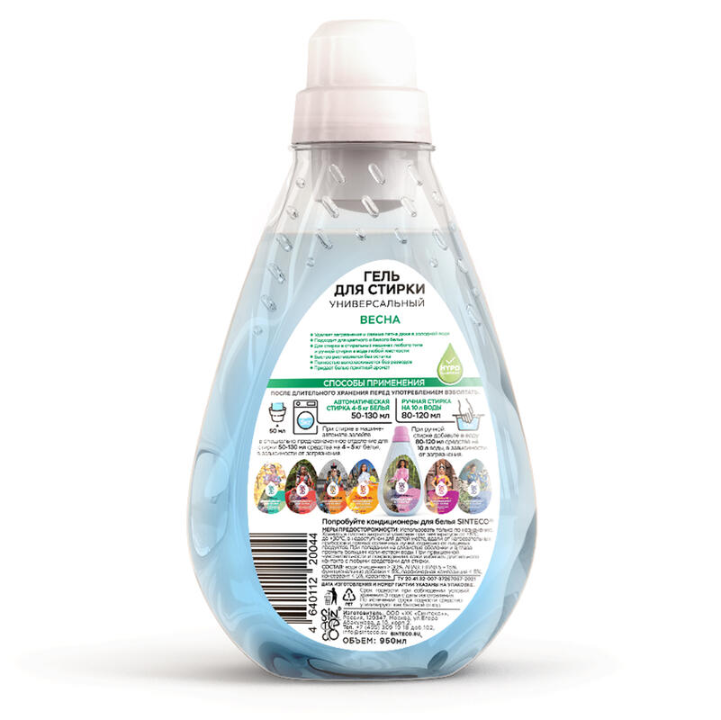 Гель для стирки "универсальный" "Весна" - подходит для цветного и белого белья. Свежий, цветочно-зеленый аромат с нотами весенней свежести.